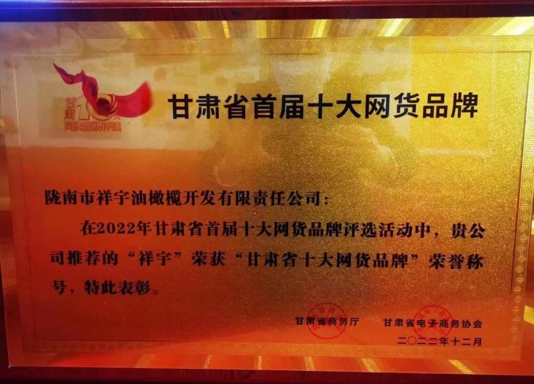 喜報 | “祥宇”榮獲甘肅省首屆“十大網(wǎng)貨品牌”!